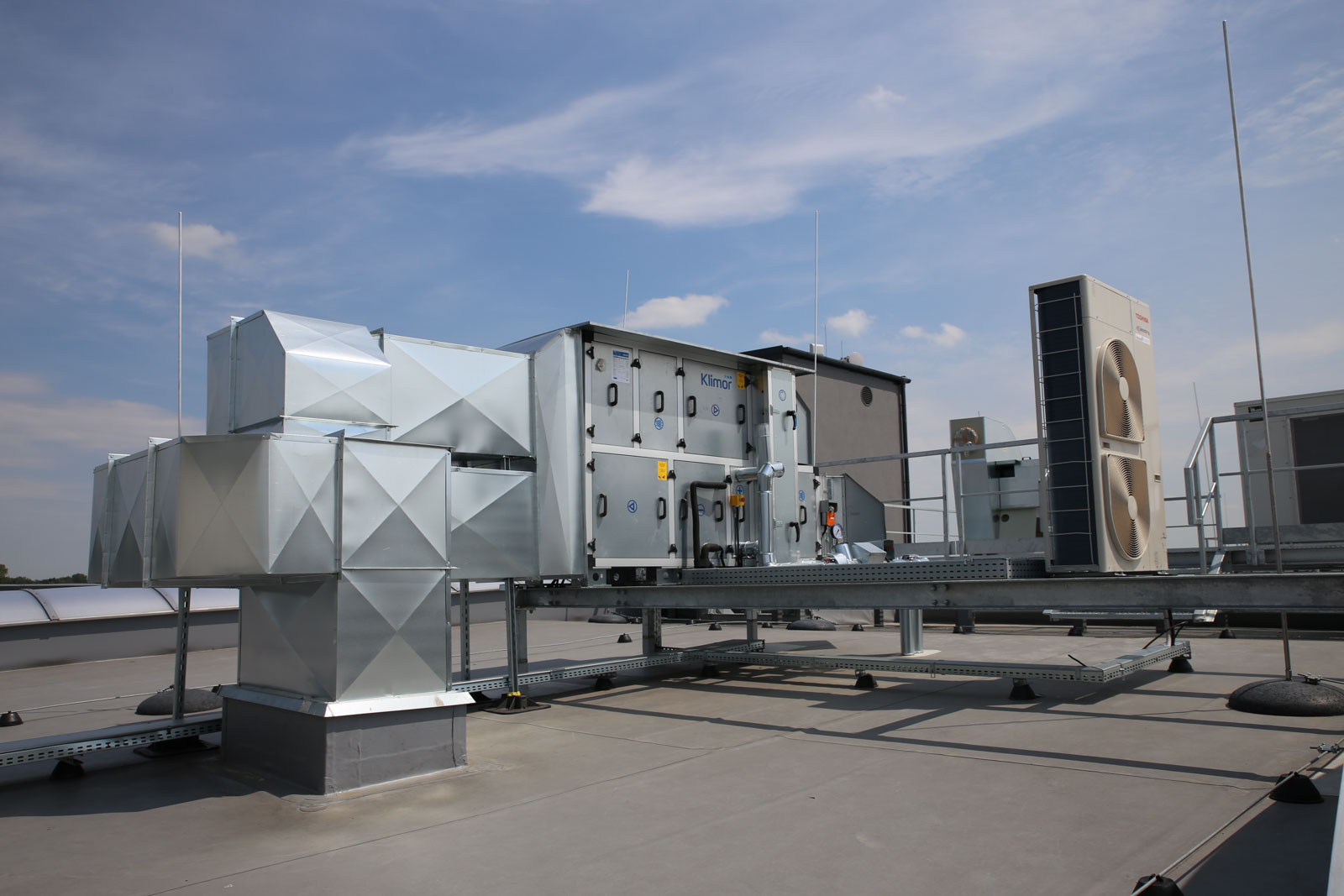 - Instalacja wentylacji z wykorzystaniem 2 central wentylacyjnych firmy Klimor.